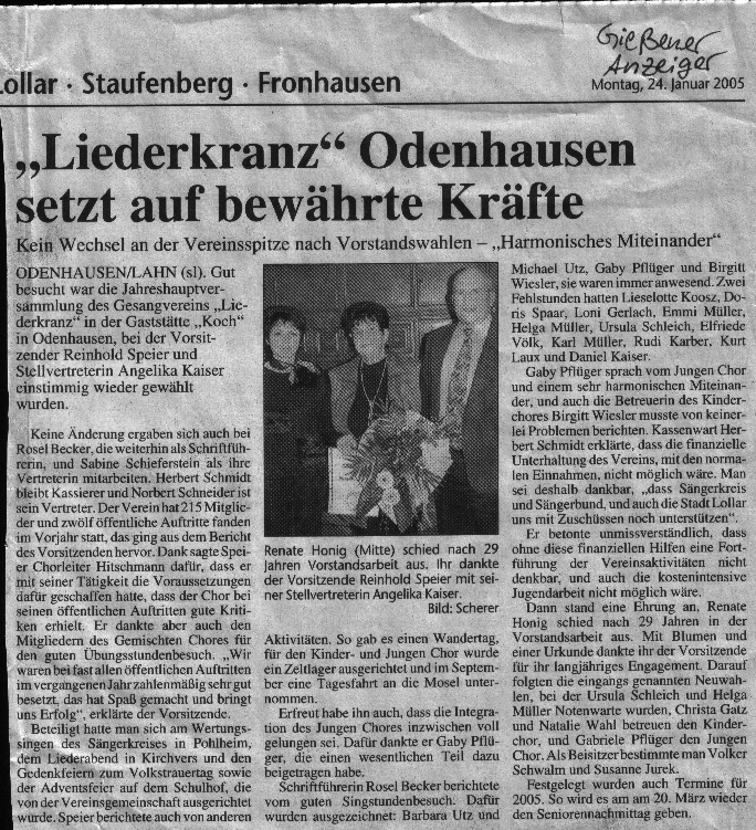 24.01.05 "Liederkranz" Odenhausen setzt auf bewähte Kräfte