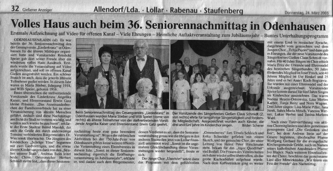24.03.05 Volles Haus beim 36. Seniorennachmittag - Alle Chöre